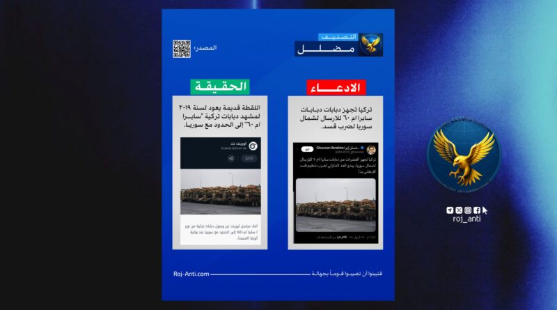 سبتمبر 28, 2025 Admin Arî 0 Comments مضلل: تركيا تجهز دبابات سابرا ام ٦٠ لضرب قسد. تركيا تجهّز العشرات من دبابات “سابرا M60” للإرسال إلى شمال سوريا لضرب قسد#الخبر_مضلّل: إذ أن اللقطات المتداولة تعود إلى عام مشاركة Read More